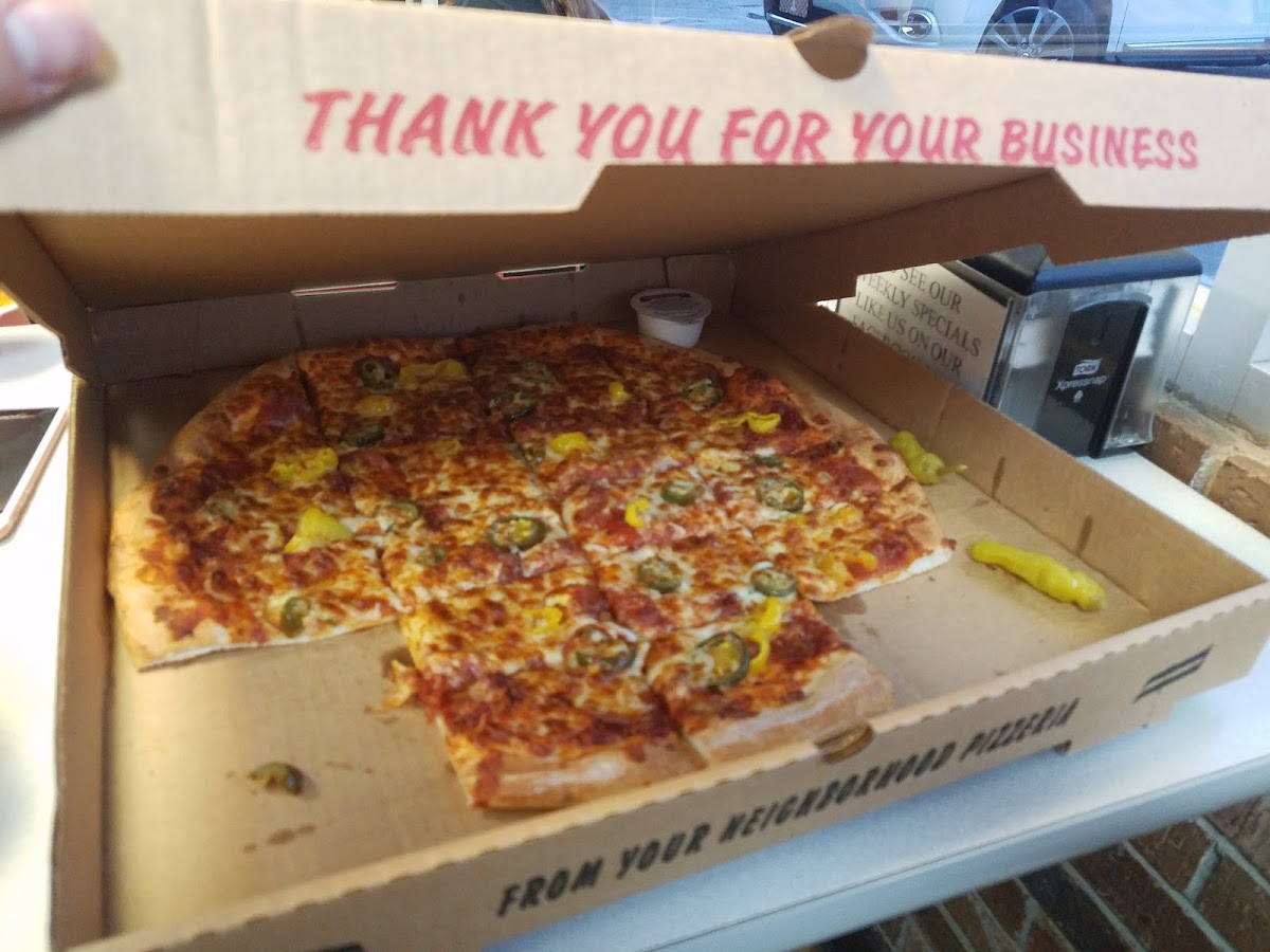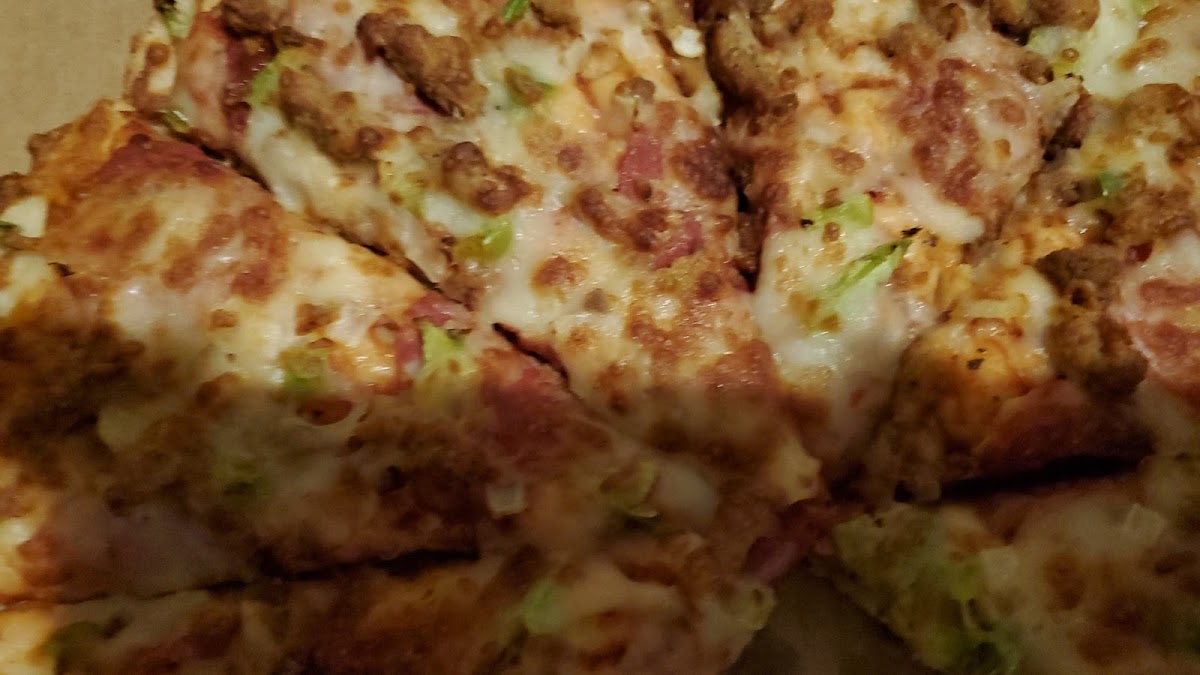 Tried a half and half specialty with spinach and steak and their meats pizza. Tasts excellent and will be back!